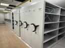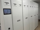 Разработали проект расстановки стеллажей в архиве, произвели и установили систему хранения на базе передвижных стеллажей с электронным приводом и механическим управлением. Все конструкции установлены на фальшпол для выравнивания полового покрытия. Высота стеллажей адаптирована под балки: ниже в местах перекрытий и выше там, где пространство позволяет. Использованы полочные стеллажи под бумажный формат А4.