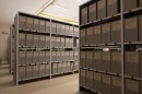 Внутреннее содержание стеллажей спроектировано относительно нестандартных размеров архивных коробов, чтобы не было потери полезного пространства.