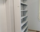 Максимальное использование пространства за счёт стационарных стеллажей вдоль стен и в центре помещения.