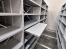 Изготовили полочные передвижные шкафы на рельсах с замковыми механизмами. Доступ возможен только через крайние стеллажи с замками и распашными дверями, что защищает хранимое от несанкционированного доступа, пыли и света. Для удобства работы дополнительно добавили выдвижные полки и архивную тележку.