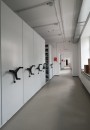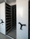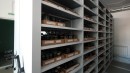 Установили стационарные и передвижные стеллажи с механическим управлением с полками для хранения фауны, находящейся в стекле и выдвижными ящиками для других экспонатов.