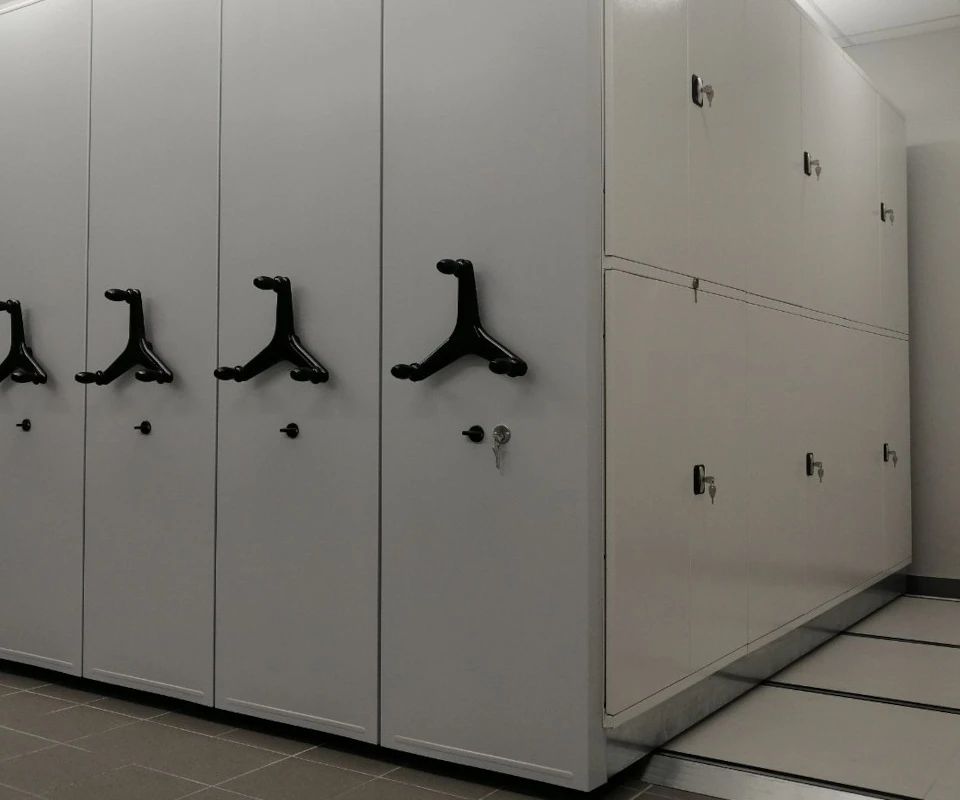 Замки устанавливаются на дверях на мобильных стеллажах.