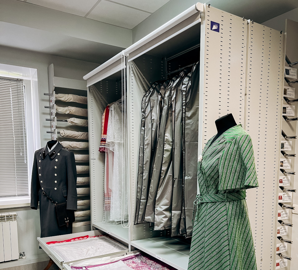 Изготовим передвижные стеллажи для хранения одежды на складе или в фондах музея с доставкой с завода производителя в города Курской области и России.