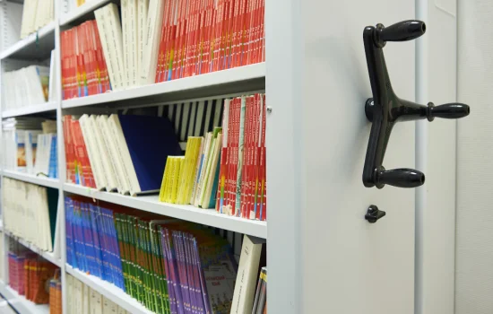 Мобильные стеллажи для организации хранилища книг. Отлично подходят для централизованной библиотечной системы.
