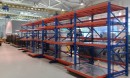 Потолочная кран-балка используется для размещения груза на выкатных полках двух линеек стеллажей.