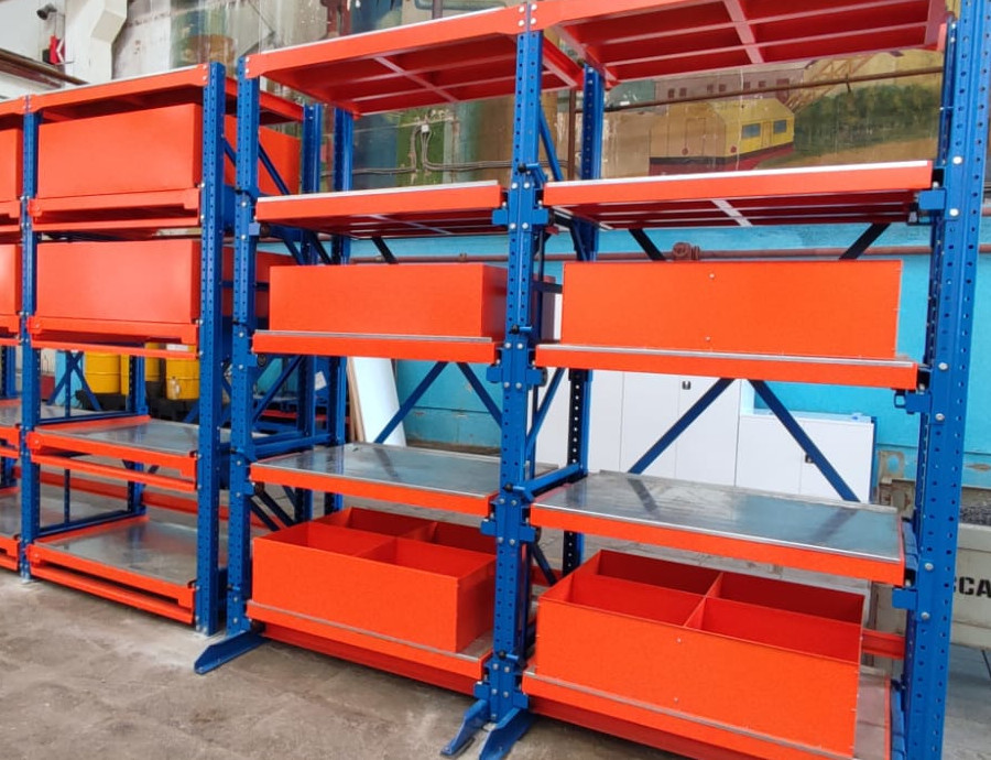 Отправьте заявку, чтобы узнать цену на изготовление стеллажей с выдвижными лотками на заказ по индивидуальным размерам с доставкой с завода производителя по городам Курской области и России.